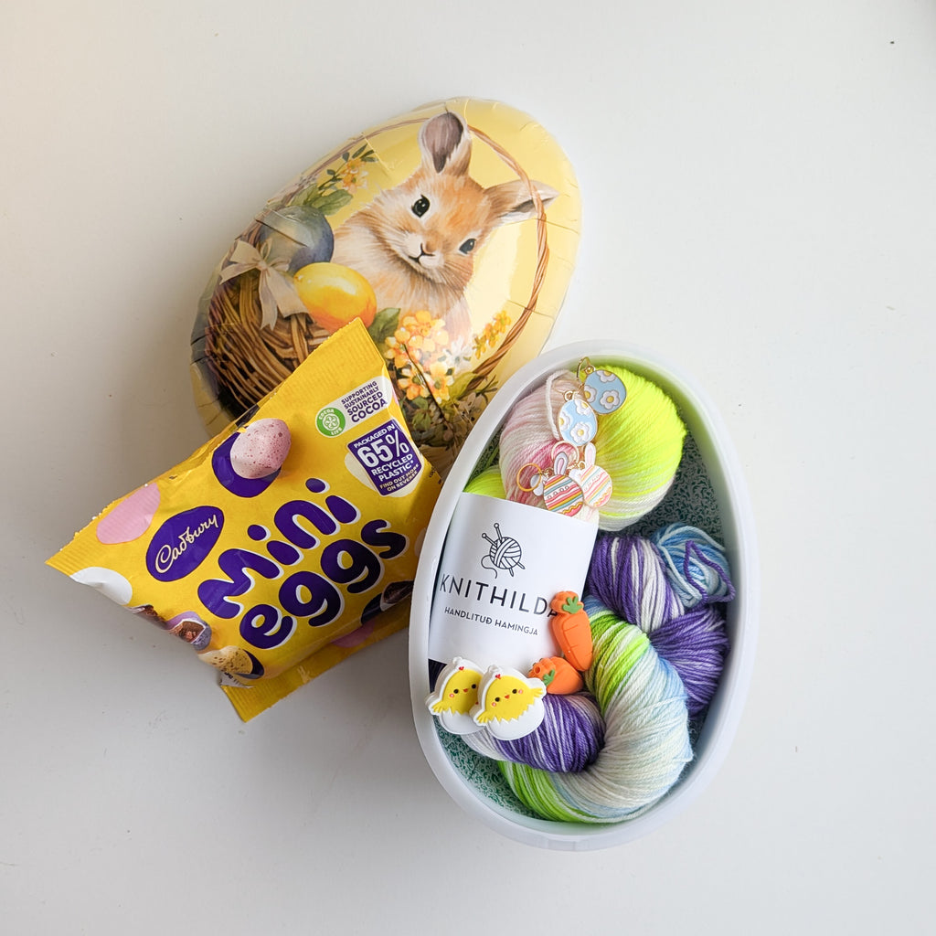 Stóra páskaegg prjónarans er fallegt pappaegg sem inniheldur prjónastoppara og prjónamerki